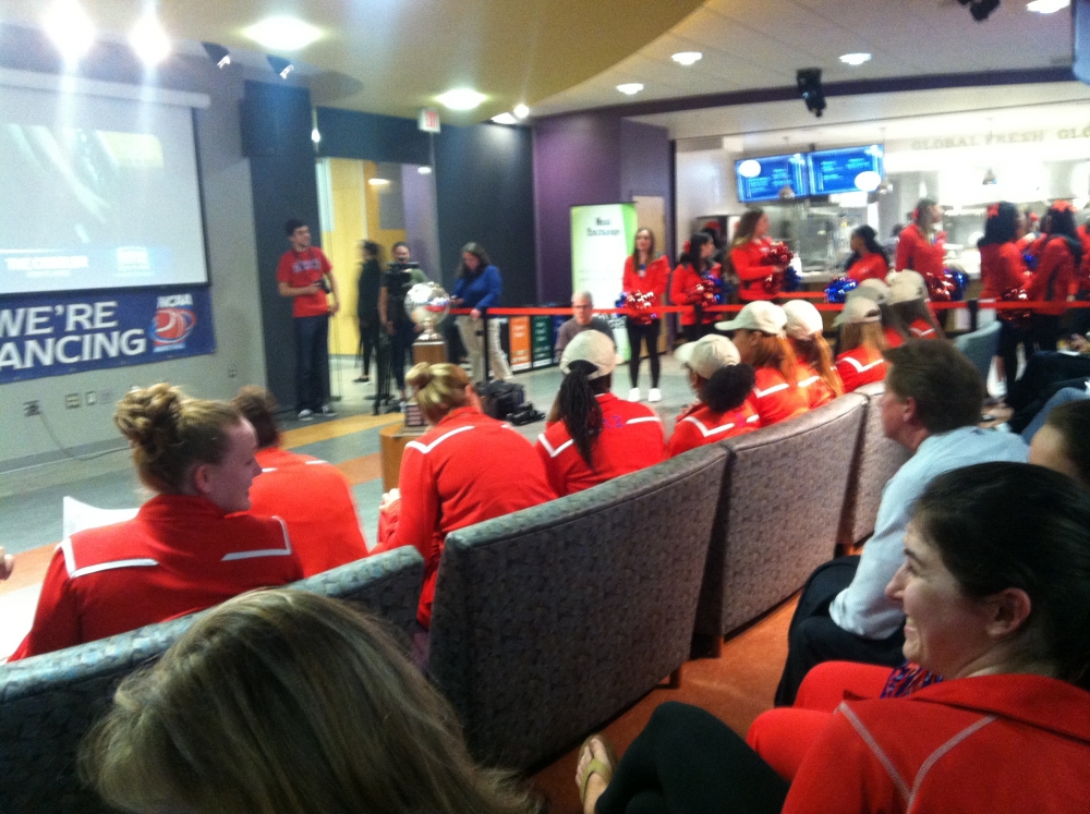 After 19 agonizing minutes, the fate of the Eagles was finally announced. AU received a No. 14 seed, and the crowd erupted in cheers. The team will travel to Iowa City, Iowa to face No. 3 Iowa University on March 20 at 2:30 p.m. in the first round of the tournament.