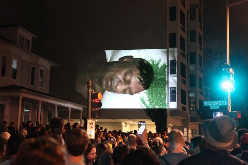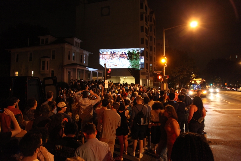 Members of the AU community and local neighbors gathered at the intersection of Macomb Street and Wisconsin Avenue in Cathedral Heights last night to see a free screening of Kanye West’s latest music video, just three blocks away from the National Cathedral.