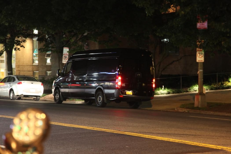 At 10:45 pm a black van rolled up with a crew that began to set up the projector, with help from the police.