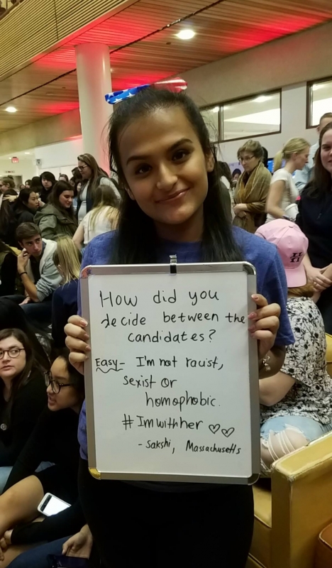 "I don't want walls in the U.S. I think this election it was really about voting for inclusion and not being racist and separated, and we need our nation to be united, and if I didn't vote, I think our nation would fall apart."