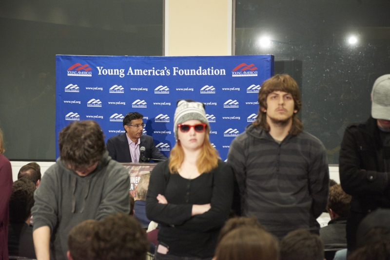 When the protesters walked out, several audience members applauded, and D’Souza said “intellect is suppressed” by the “combination of anger and ignorance” expressed by the protesters.