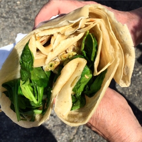 Pesto crepe from Rita’s Crepes at the Bethesda farmers market (Lauren Staehle/The Eagle)