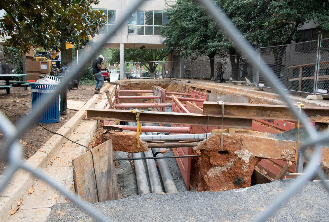 Replacing AU’s roughly 50-year-old steam piping system requires the earth covering those pipes to be removed. The scope of the project is massive: every building on campus must be connected to the new system, according to David Dower, assistant vice president for project management for AU.