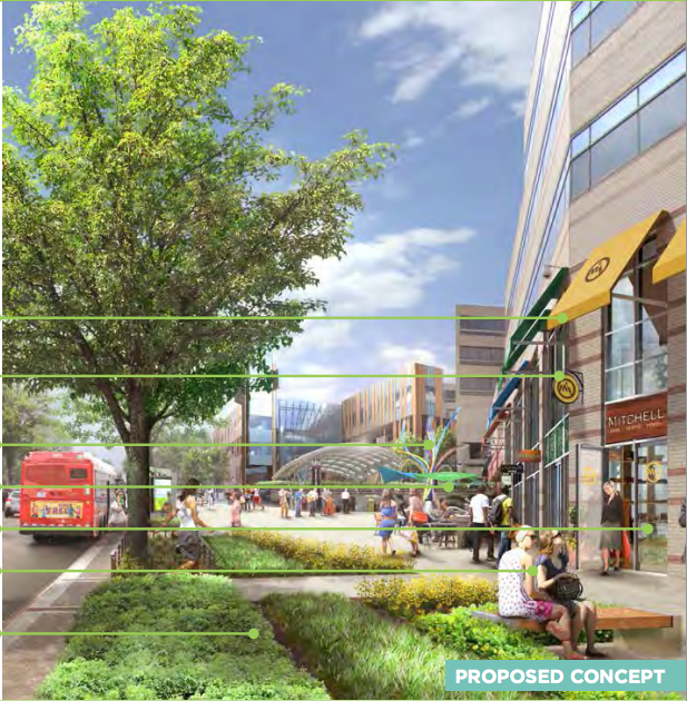 “A repositioned Commercial District will redefine the community as an energetic, lush place that attracts new customers and allows residents, students, and workers to come together,” the plan says.